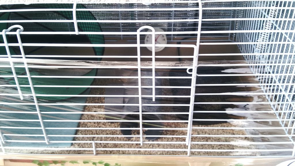 温度はケージの中に温度計を入れて常にチェックしているんですが、28〜30度くらいをキープしていて、ケージの中に手を入れてもあったかく感じられるし特に問題ないように見えていました。