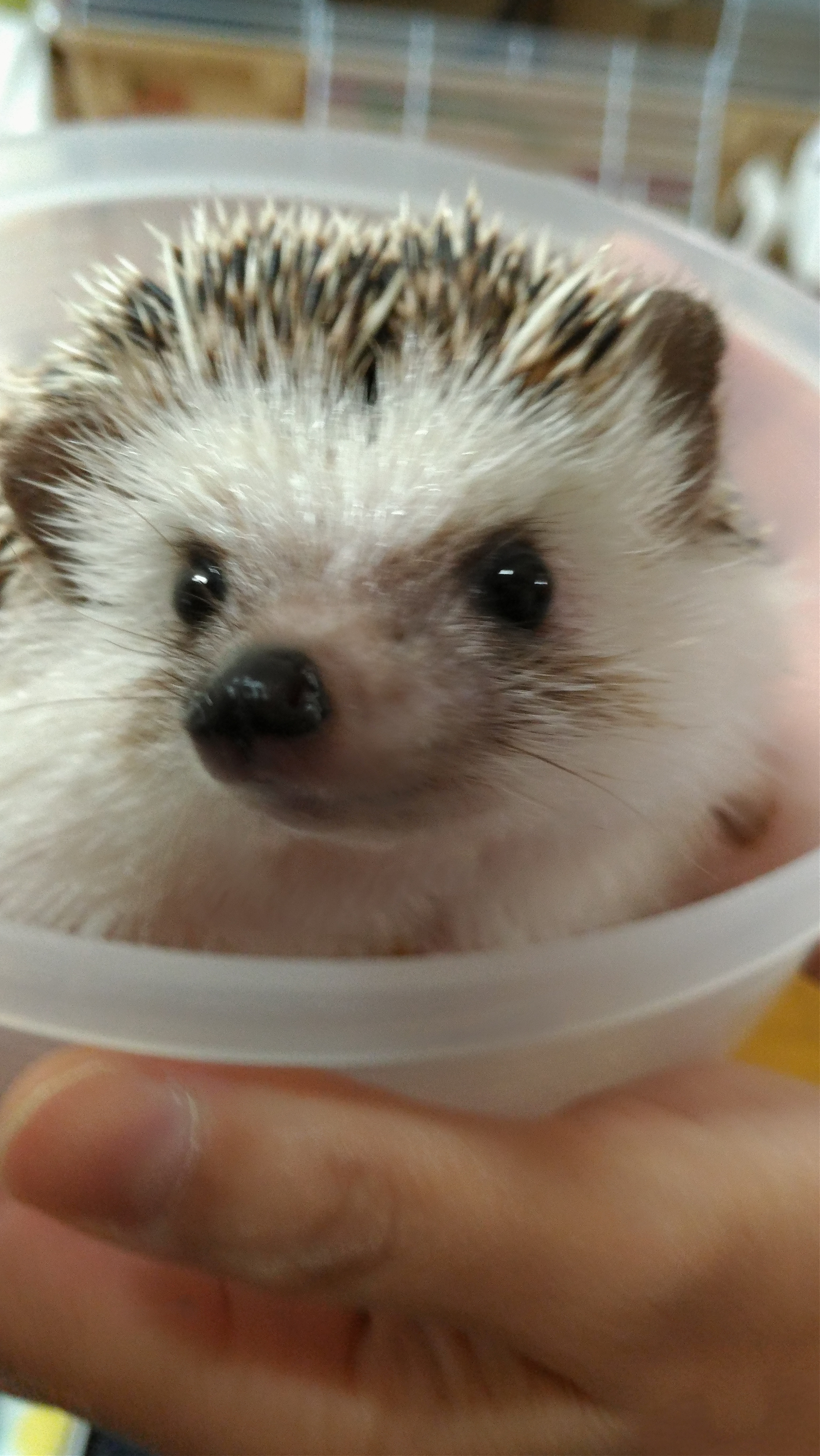 (※ふく丸は開けた明るい場所ではご飯を食べないため、箱で覆って食べさせています。)